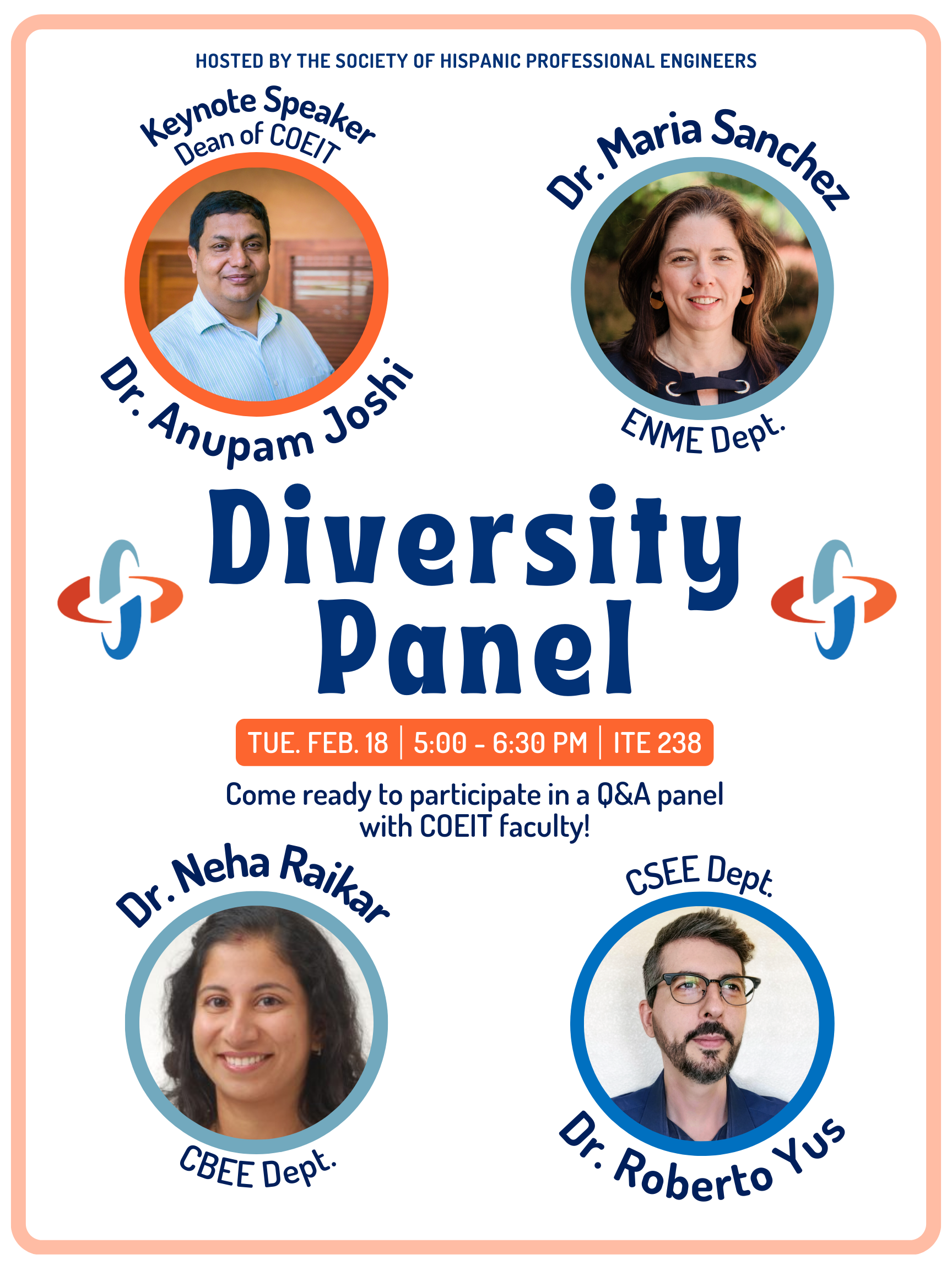 You are invited to the annual COEIT diversity panel! You'll have the chance to chat with COEIT faculty about their unique insight and experiences, featuring keynote speaker and dean of COEIT Dr. Anupam Joshi. Food and drinks provided!